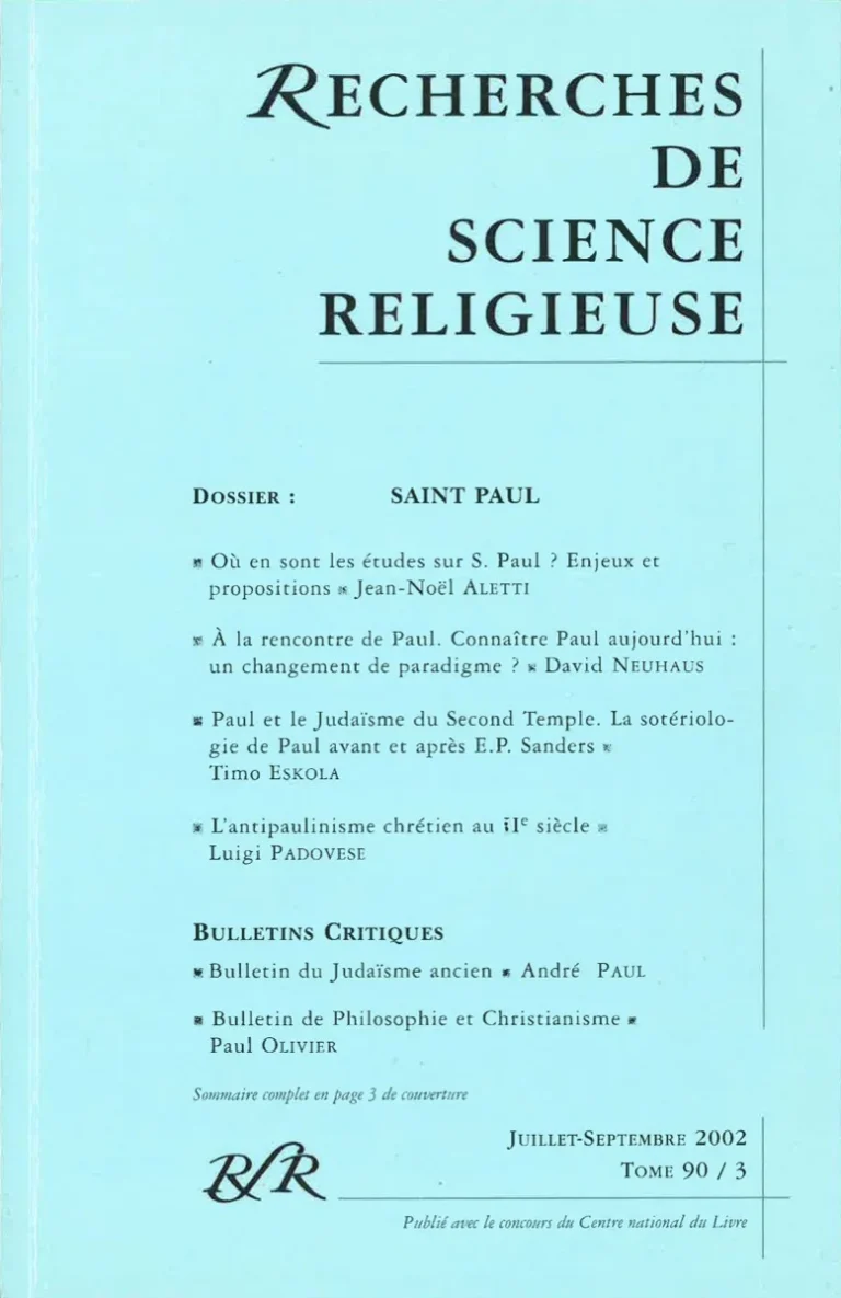 Pauline exegesis of the past century was generally the work of prostestant specialists. This article considers the changes brought about, concentrating on two individuals who had animated and influenced present day research, E.P. Sanders and H. Without doubt, Sanders with his theory of covenant nomism, had worked the most to show the primacy of Christology in Pauline soteriology. If his idea of covenant nomism were true, Paul would never have thought that Judaism was a legalistic religion. Rather, the apostle must have seen a covenant nomism in it. The idea of legalism must have had a later origin, and comes from protestant biblical theology. For Sanders, Paul is an adept of covenant nomism, which constructed his Christological soteriology on a Jewish basis, and he did not want to criticize the conduct of the Jewish faith, nomism. He did not deny Jewish beliefs, but his Christology dictated his soteriology. Without denying that Christ was the center of the apostole’s soteriology, ther article tries to see if Sanders clarified the basic structure of Paul’s thought and its relation to the teachings of the writings of Judaism of second Temple. The discussion of Sander’s theory, and of those who followed his ideas, shows that the idea they have of second Temple Judaism is too narrow, and this had the consequence of leading them to a bad interpretation of the relation of Paul to the Judaism of his time.