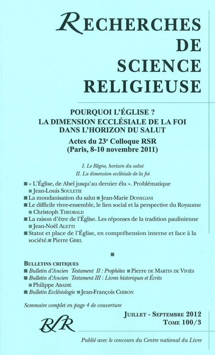 Actes du colloque (I) : pourqui l’église? la dimension ecclésiale de la foi dans l’horizon du salut