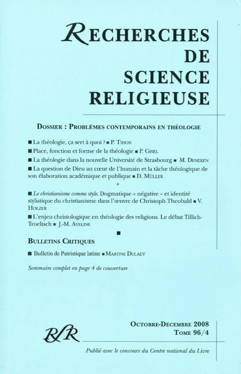 Les Recherches de Science Religieuse abordent depuis 1910 les questions de fond qui se sont posées à la théologie, du fait des recherches historiques sur les origines chrétiennes, sur l’histoire de la Bible et du dogme et sur les religions non chrétiennes. Aujourd’hui, les RSR sont un outil incontournable pour les recherches en sciences religieuses, en histoire, en exégèse biblique, en philosophie et en théologie. S’abonner aux Recherches de Science Religieuse, c’est soutenir l’effort, toujours nécessaire, d’une pensée critique et scientifique des questions théologiques, à même de rencontrer les défis contemporains.